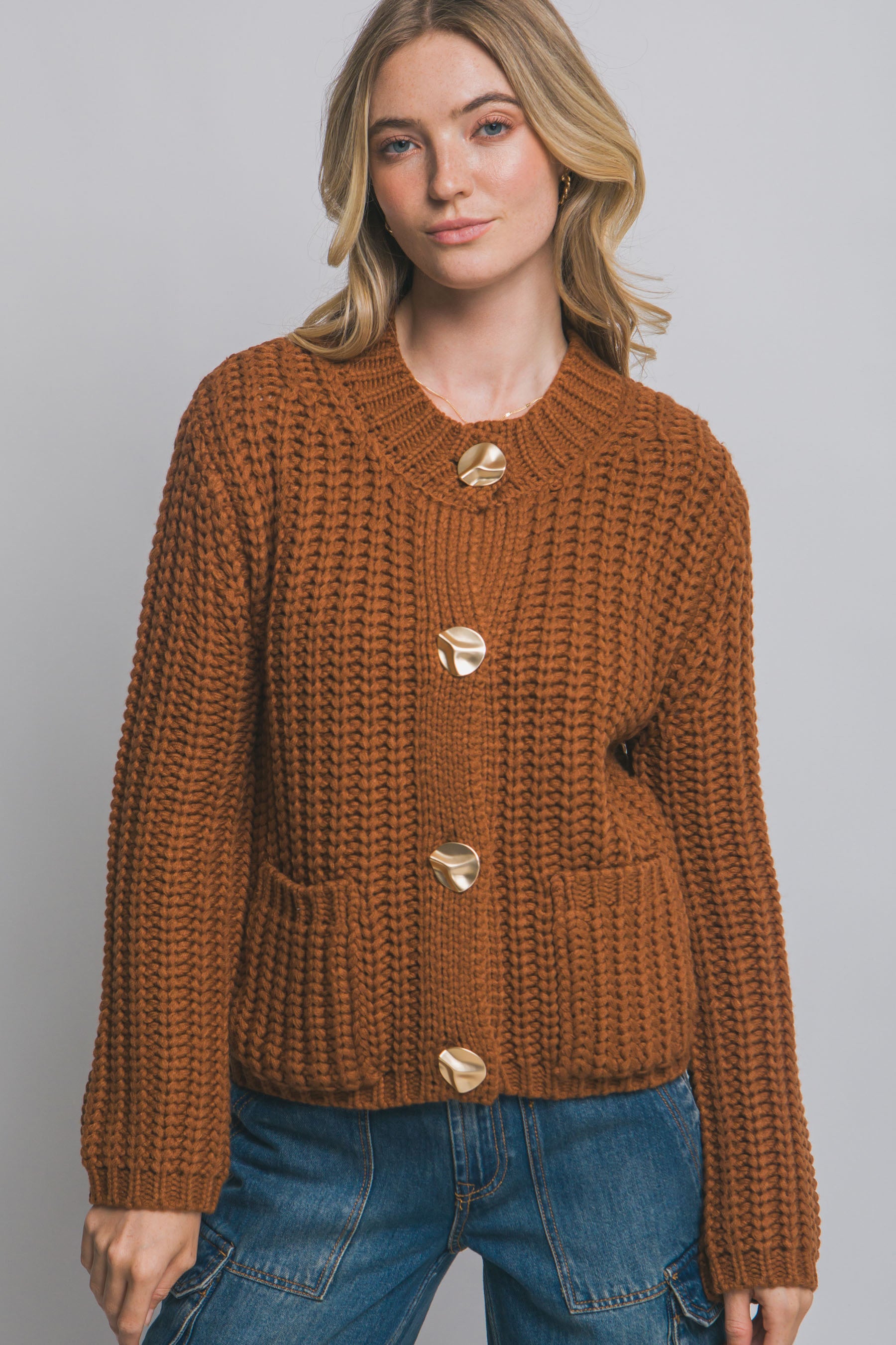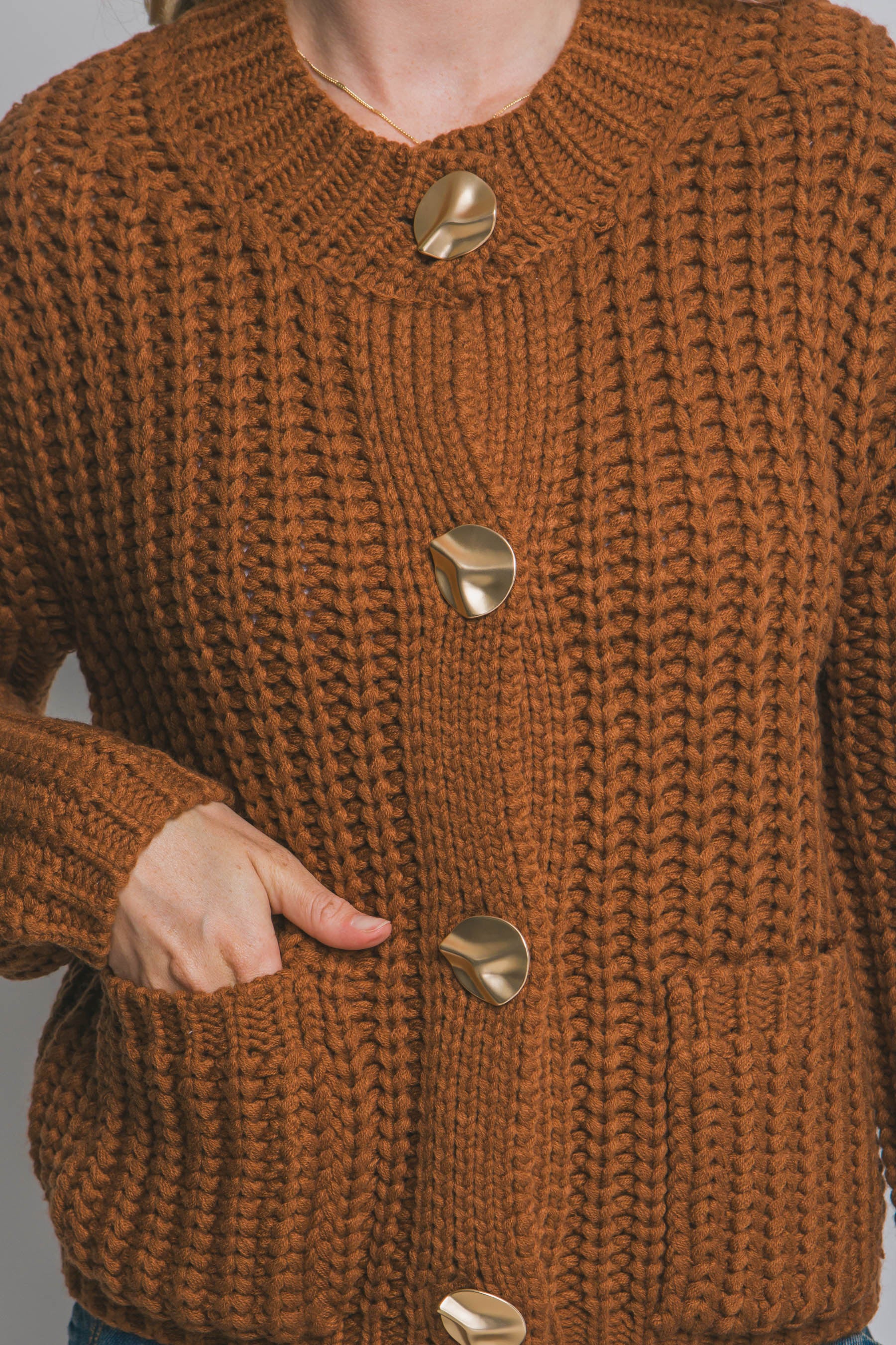 Suéter tejido grueso con botón dorado calidad premium